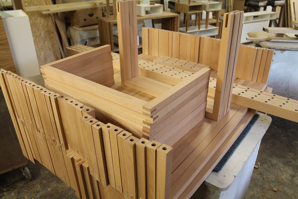 Nach dem verleimen…. Geschrieben am 4. September 2015 | von Andreas Janson Ausziehbares Bett & Bank Yin Yang in Buche.